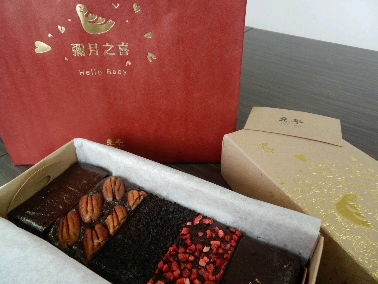 但讓我驚訝的是,天阿真是異常得好吃!!它們的彌月蛋糕是巧克力布朗尼,雖然是布郎尼但卻與一般的布朗尼吃起來不一樣,總共5種口味,我最愛得就是甜酒的口味。你相信嗎?全家人都覺得堯平比金格跟糖村的彌月蛋糕還好吃,而且不誇張是好吃太多了!!